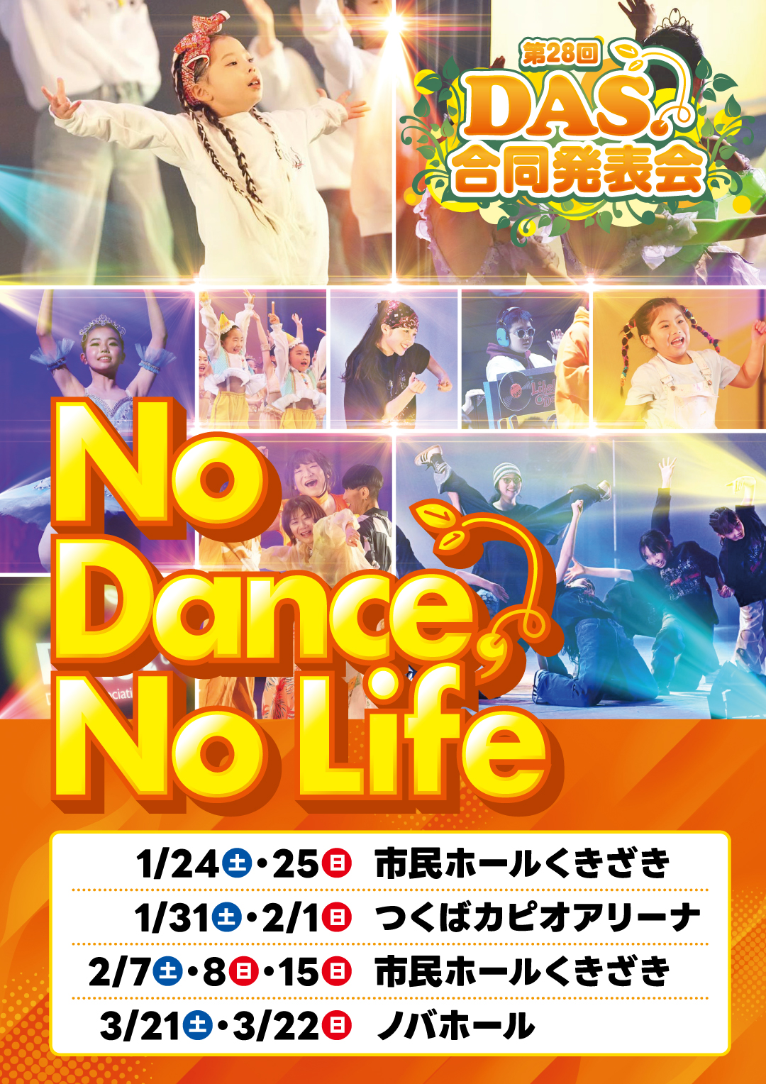 ~「第24回DAS合同発表会」開催情報 ~ ■本ページに掲載されている情報 ①本番日・オンライン配信日・配信視聴申込み方法 ②出演クラス一覧(全会場) ③各会場(牛久/2月ノバ/くきざき/3月ノバ)の…